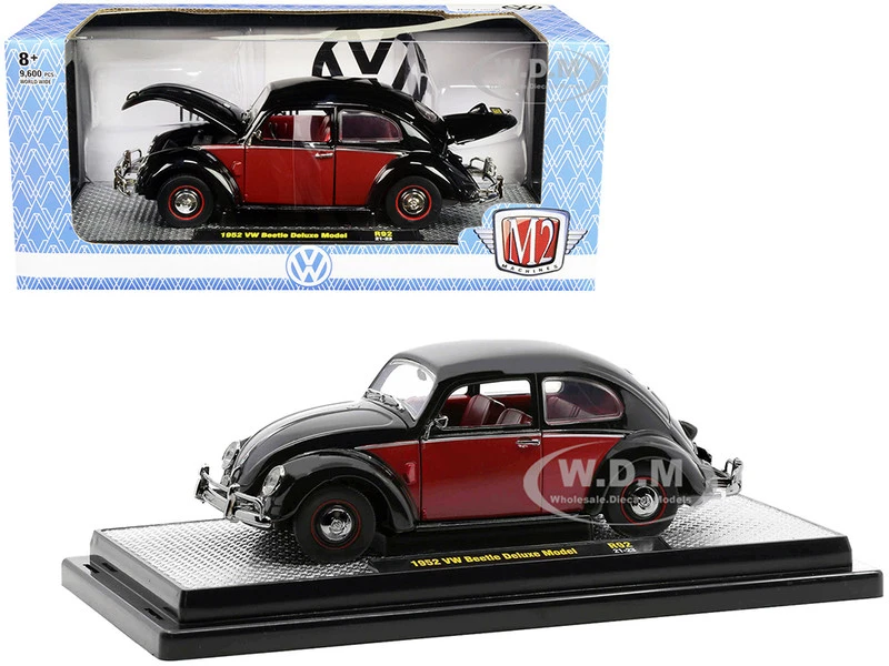 - Brand new 1/24 scale diecast car model of 1952 Volkswagen Beetle Deluxe Black and Red with Red Interior Limited Edition to 9600 pieces Worldwide die cast car model by M2 Machines.