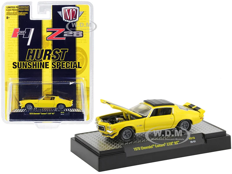- Brand new 1/64 scale diecast car model of 1970 Chevrolet Camaro Z/28 RS “Hurst Sunshine Special” Yellow with Black Stripes Limited Edition to 6050 pieces Worldwide die cast model car by M2 Machines.