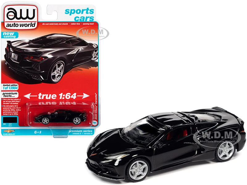 - Brand new 1/64 scale diecast car model of 2020 Chevrolet Corvette C8 Stingray Black “Sports Cars” Limited Edition to 13904 pieces Worldwide die cast model car by Auto World.