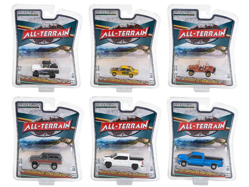 - Brand new 1/64 scale diecast car models of “All Terrain” Series 13, Set of 6 pieces die cast model cars by Greenlight.