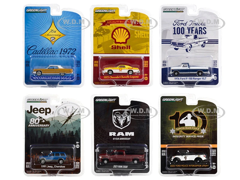 - Brand new 1/64 scale diecast car models of “Anniversary Collection” Set of 6 pieces Series 14 die cast model cars by Greenlight.