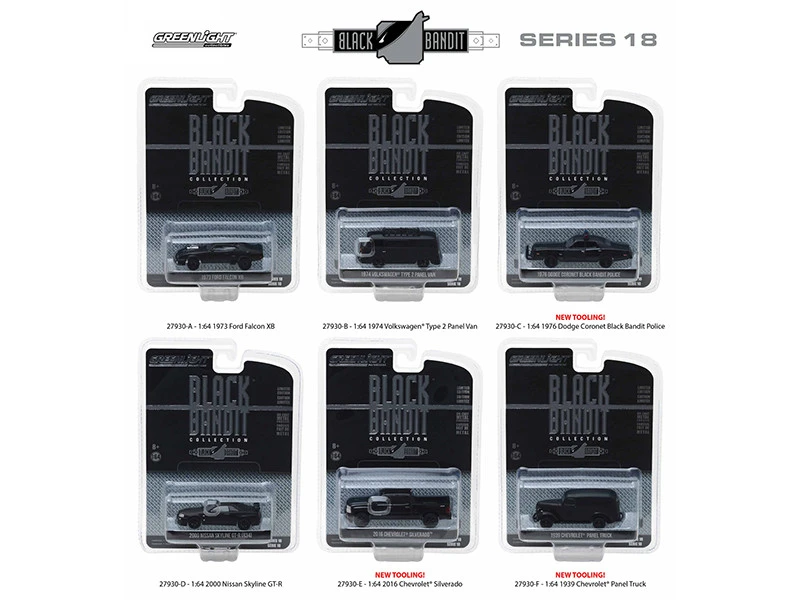- Brand new 1:64 scale diecast model car of Black Bandit Series 18, 6pc set die cast model cars by Greenlight.