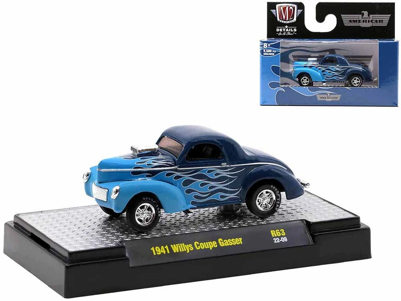 - 2) 1941 Willys Coupe Gasser Dark Blue Metallic with Light Blue Flames.