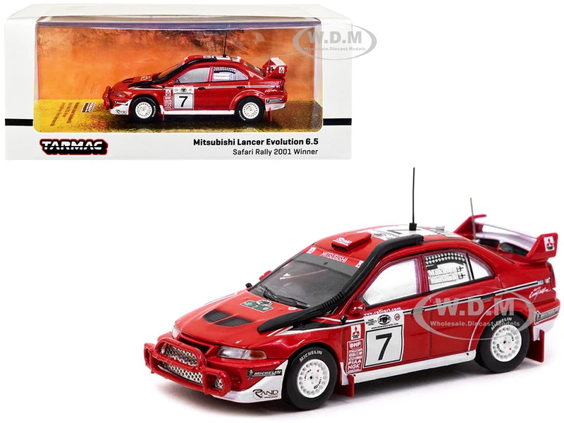 - Brand new 1/64 scale diecast model car of Mitsubishi Lancer Evolution 6.5 #7 Tommi Makinen – Risto Mannisenmaki Winner Safari Rally (2001) “Hobby64” Series die cast model car by Tarmac Works.