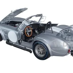 Shelby Cobra 427 S/C Silver Metallic With White Stripes 1/18 Diecast Model Car By Kyosho